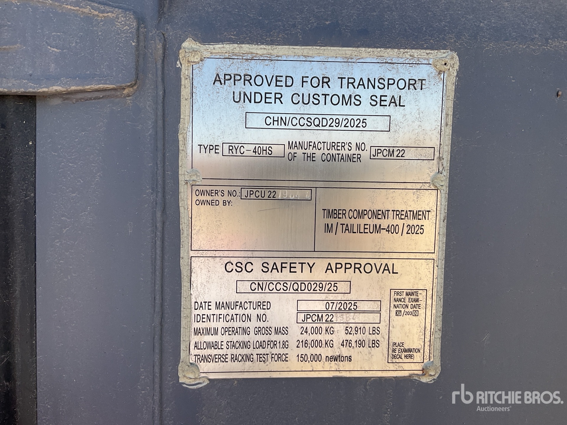 A qualified Ritchie Bros. employee collected detailed equipment information and performed functional tests on the key components of this asset. You, or a proxy, may also inspect any items on site prior to bidding on auction day.