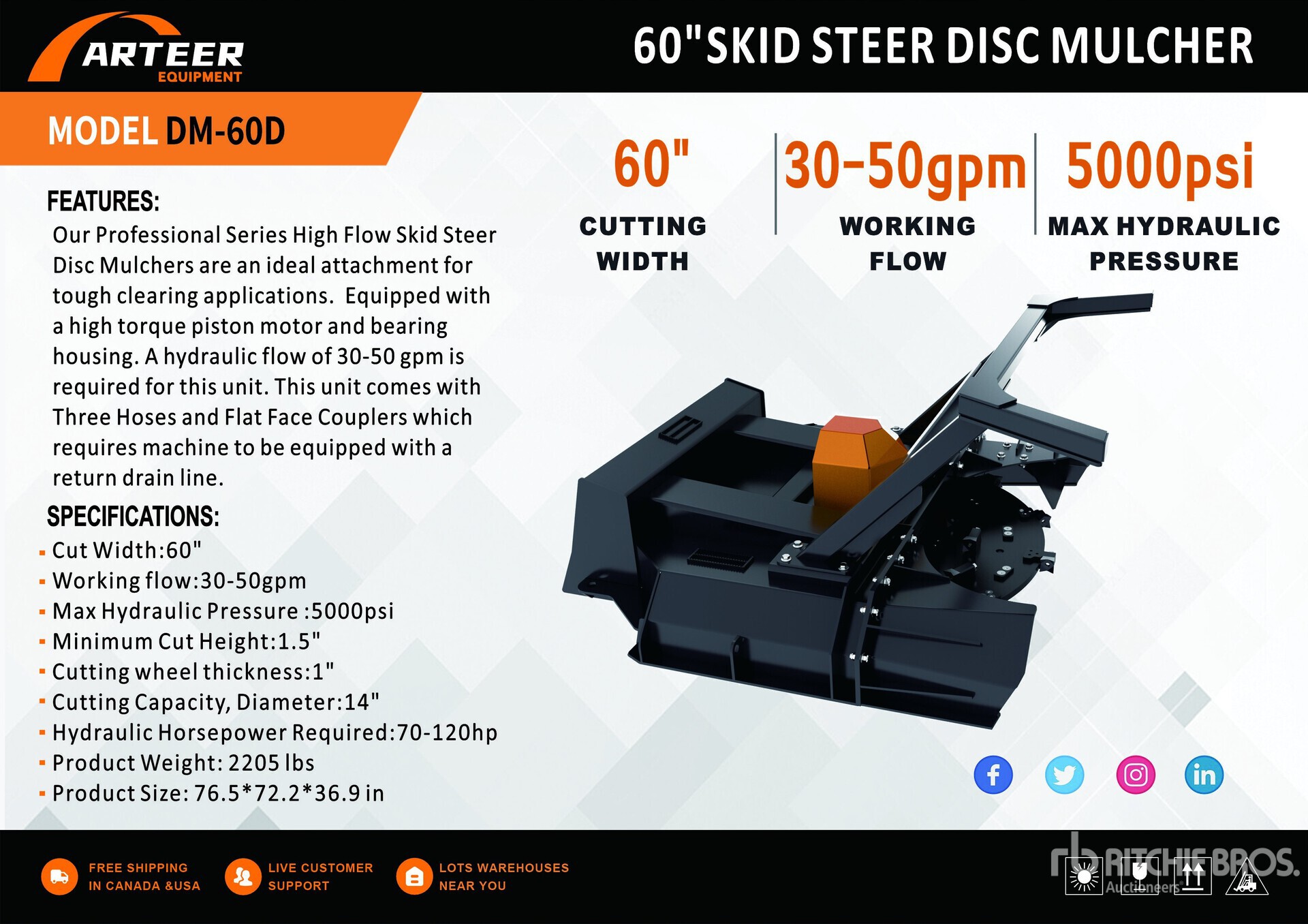 The detailed equipment information is limited in scope, and Ritchie Bros. Auctioneers has not inspected any aspects or components of the equipment other than those expressly set forth herein. Unless expressly stated, we make no representations or warranties, express or implied, concerning the equipment or its components, including without limitation any representations or warranties concerning functionality, conformity or compliance with any safety standard or requirement of any applicable authority or regulatory body, fitness for any particular purpose, or merchantability. You are strongly advised to perform your own detailed inspection of the equipment prior to bidding.