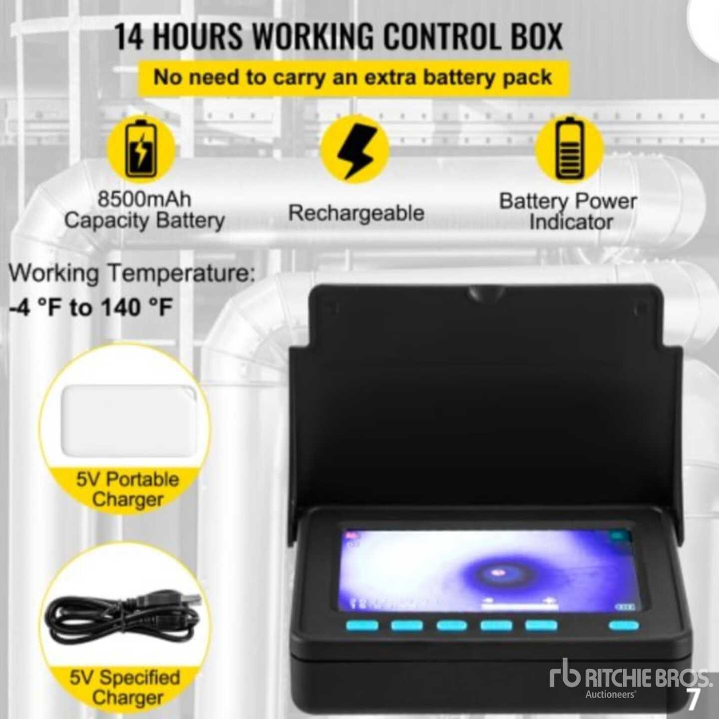 50 Meter Reach, HD Monitor, Waterproof IP68, 6x LED, Akku, Fast Charger