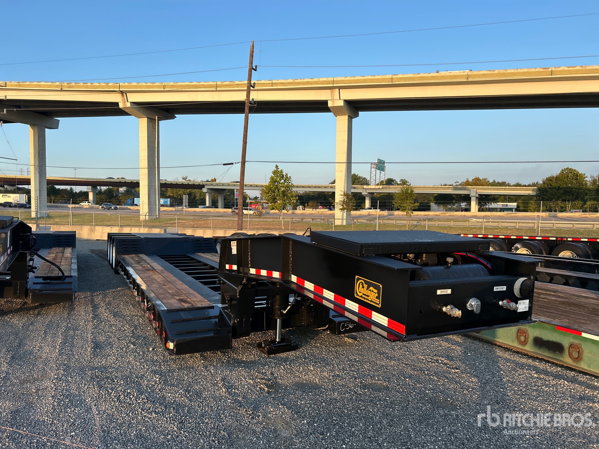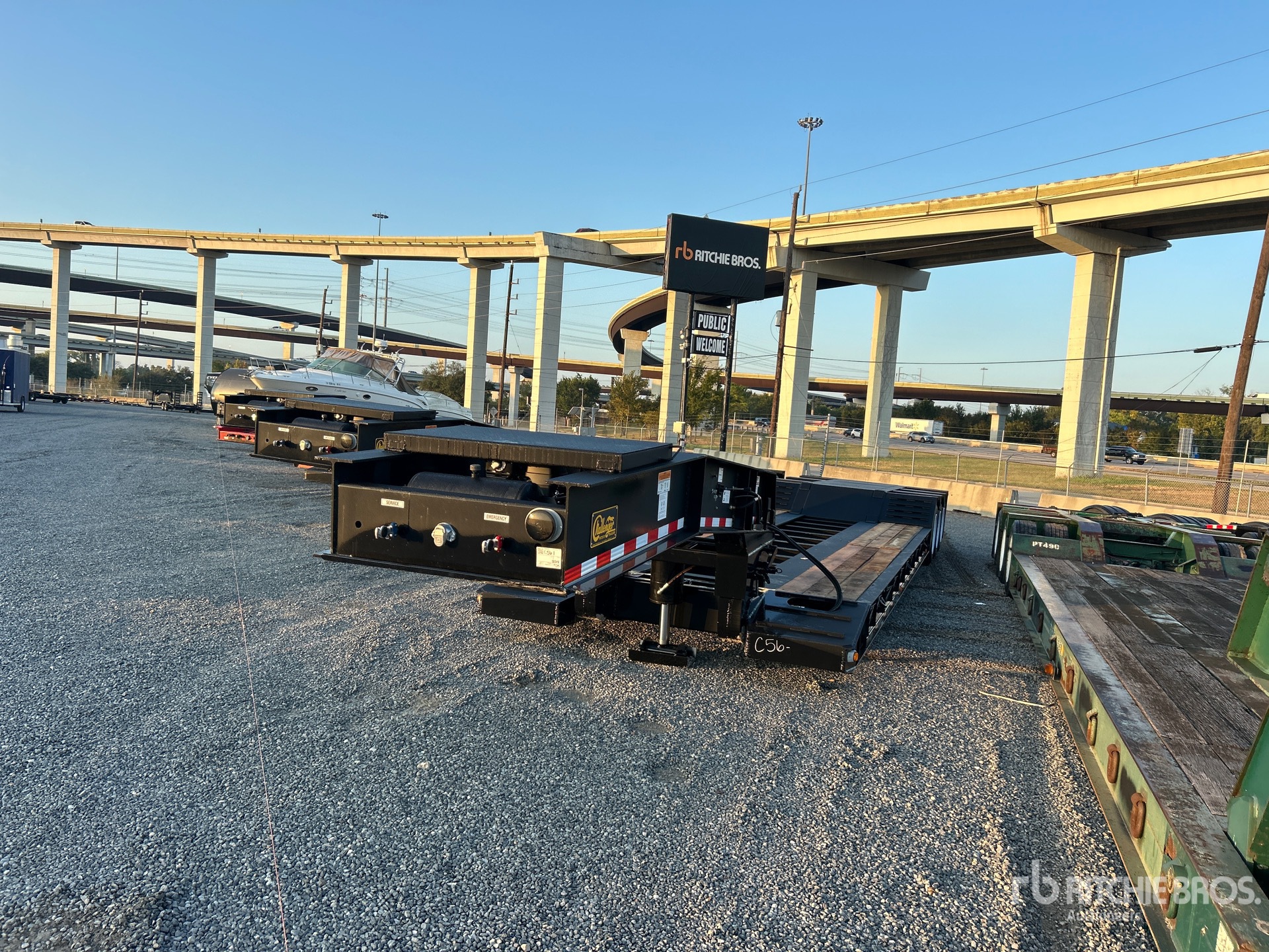 Located in Lane 37, 122540 lb GVWR, Hydraulic Removable Gooseneck, 22 ft 6 in x 102 in Main Deck, Folding Side Extensions, Spring Suspension