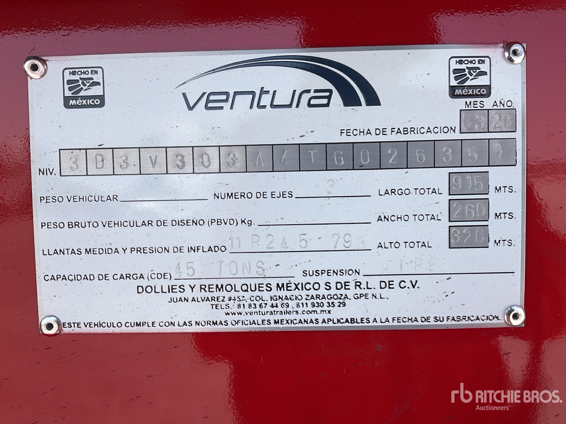 The detailed equipment information is limited in scope, and Ritchie Bros. Auctioneers has not inspected any aspects or components of the equipment other than those expressly set forth herein. Unless expressly stated, we make no representations or warranties, express or implied, concerning the equipment or its components, including without limitation any representations or warranties concerning functionality, conformity or compliance with any safety standard or requirement of any applicable authority or regulatory body, fitness for any particular purpose, or merchantability. You are strongly advised to perform your own detailed inspection of the equipment prior to bidding.
