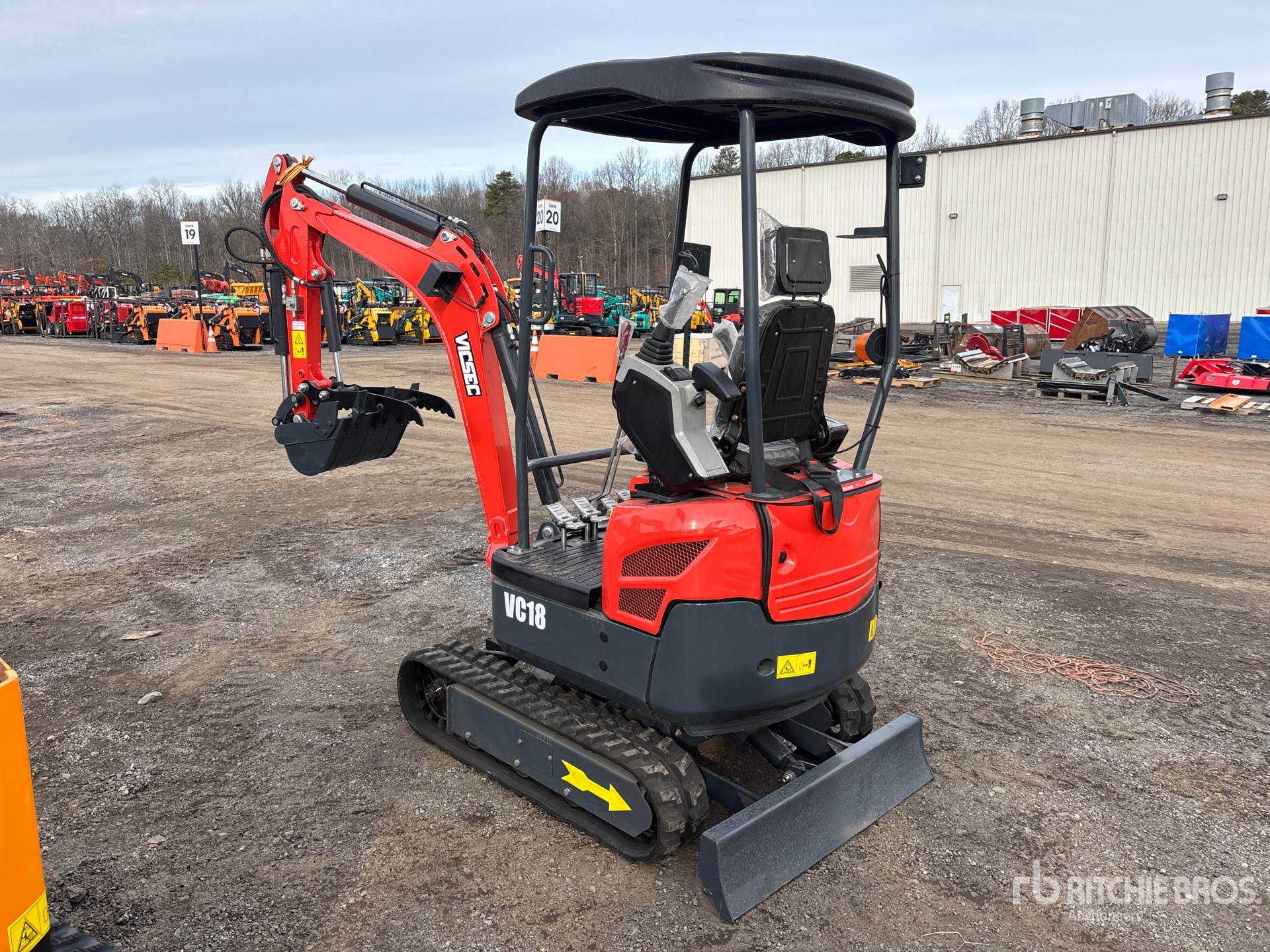 2025 US EPA Label, Swing Boom, 2 ft 4 in Stick, Auxiliary Hydraulic Plumbing, Backfill Blade, 7 in Rubber Tracks, 15 in Digging Bucket, Hydraulic Thumb