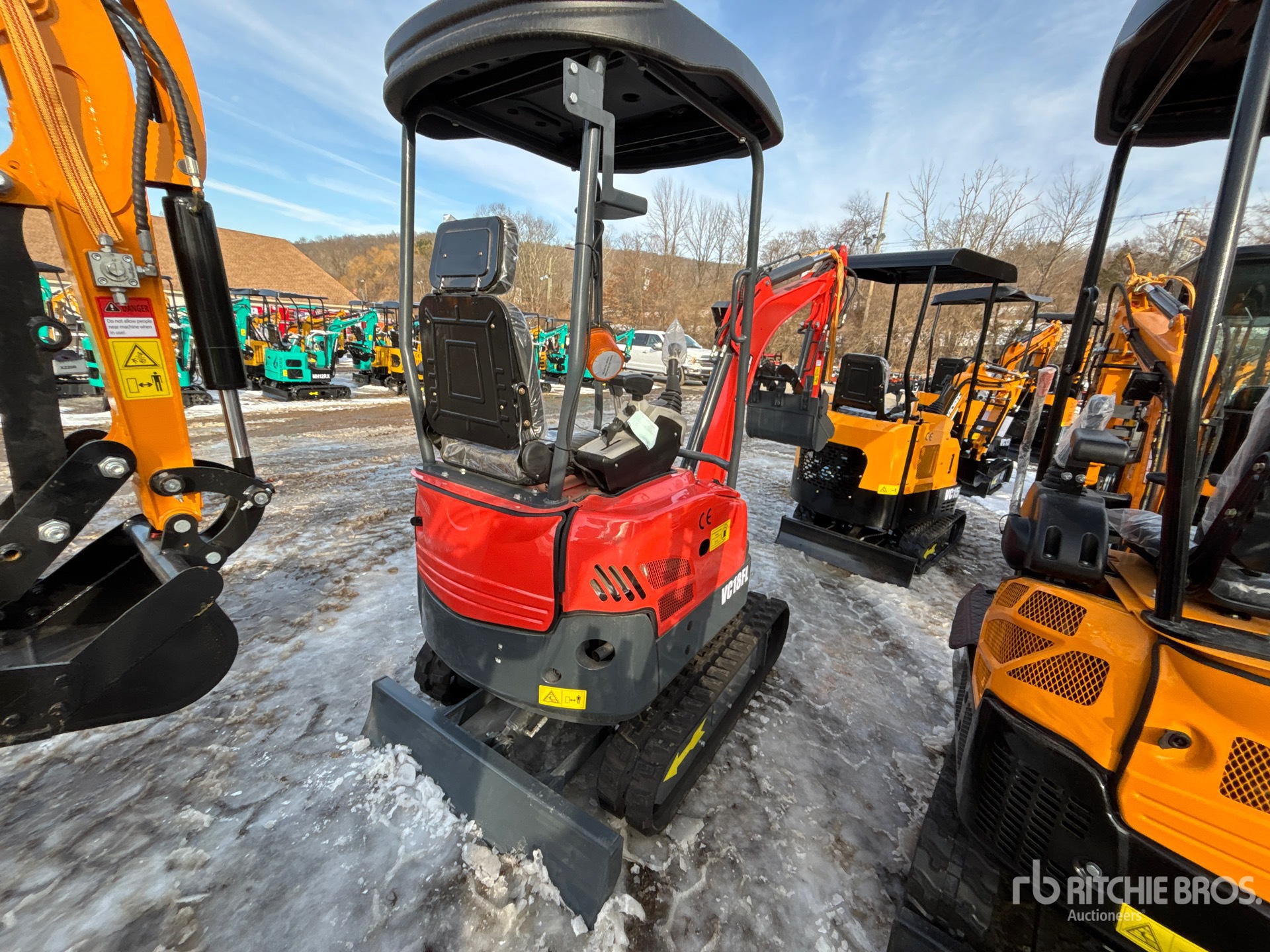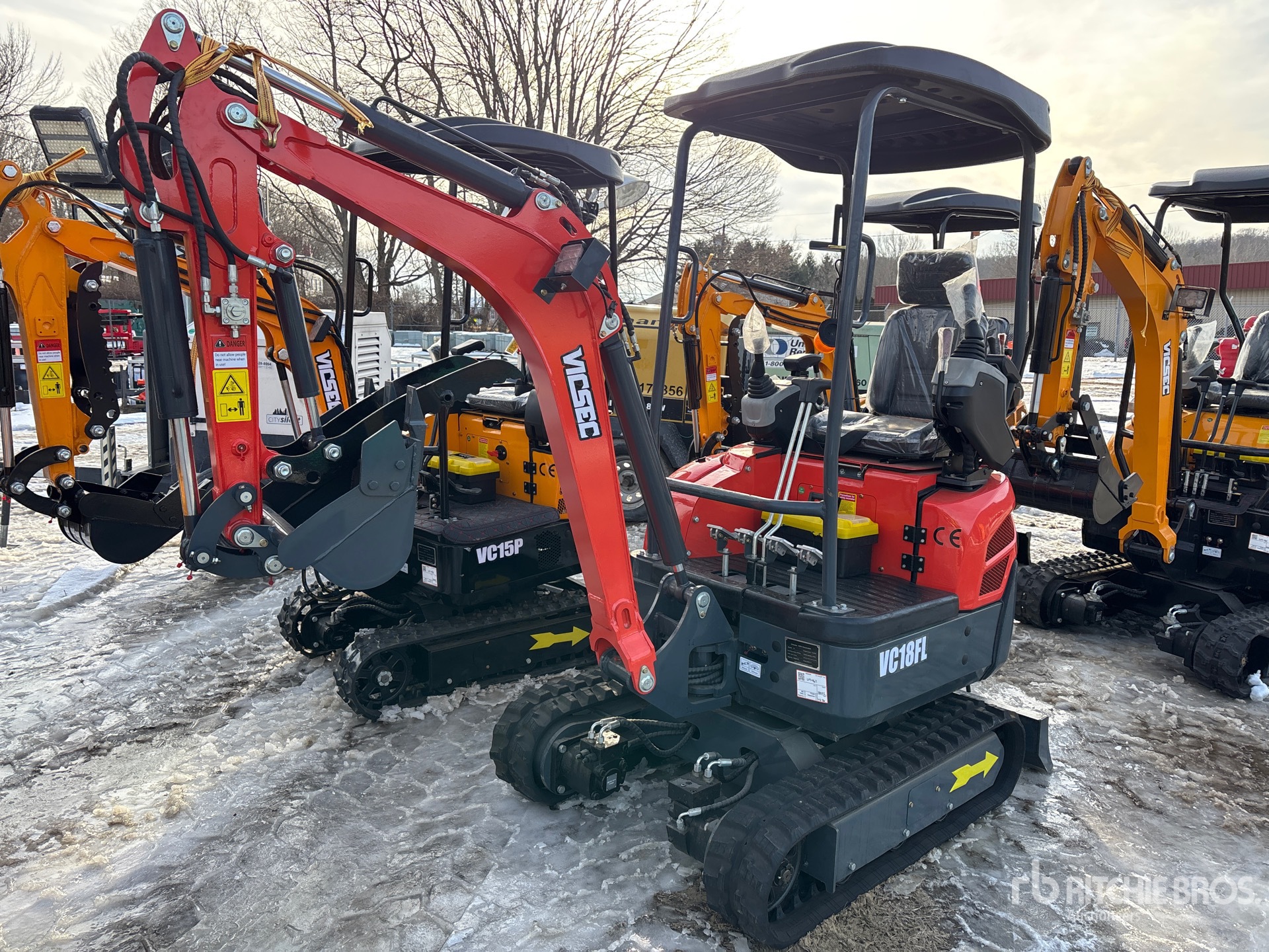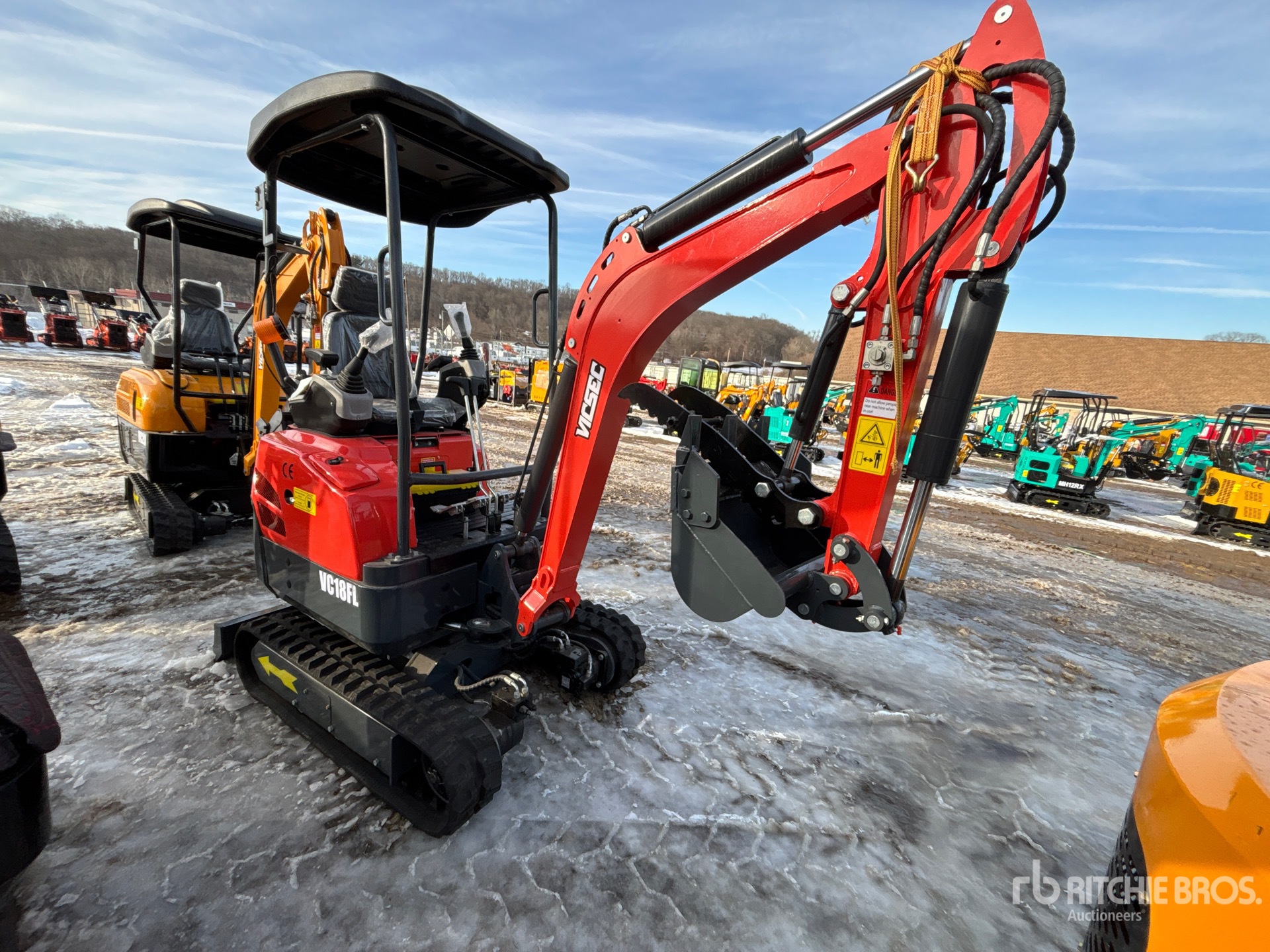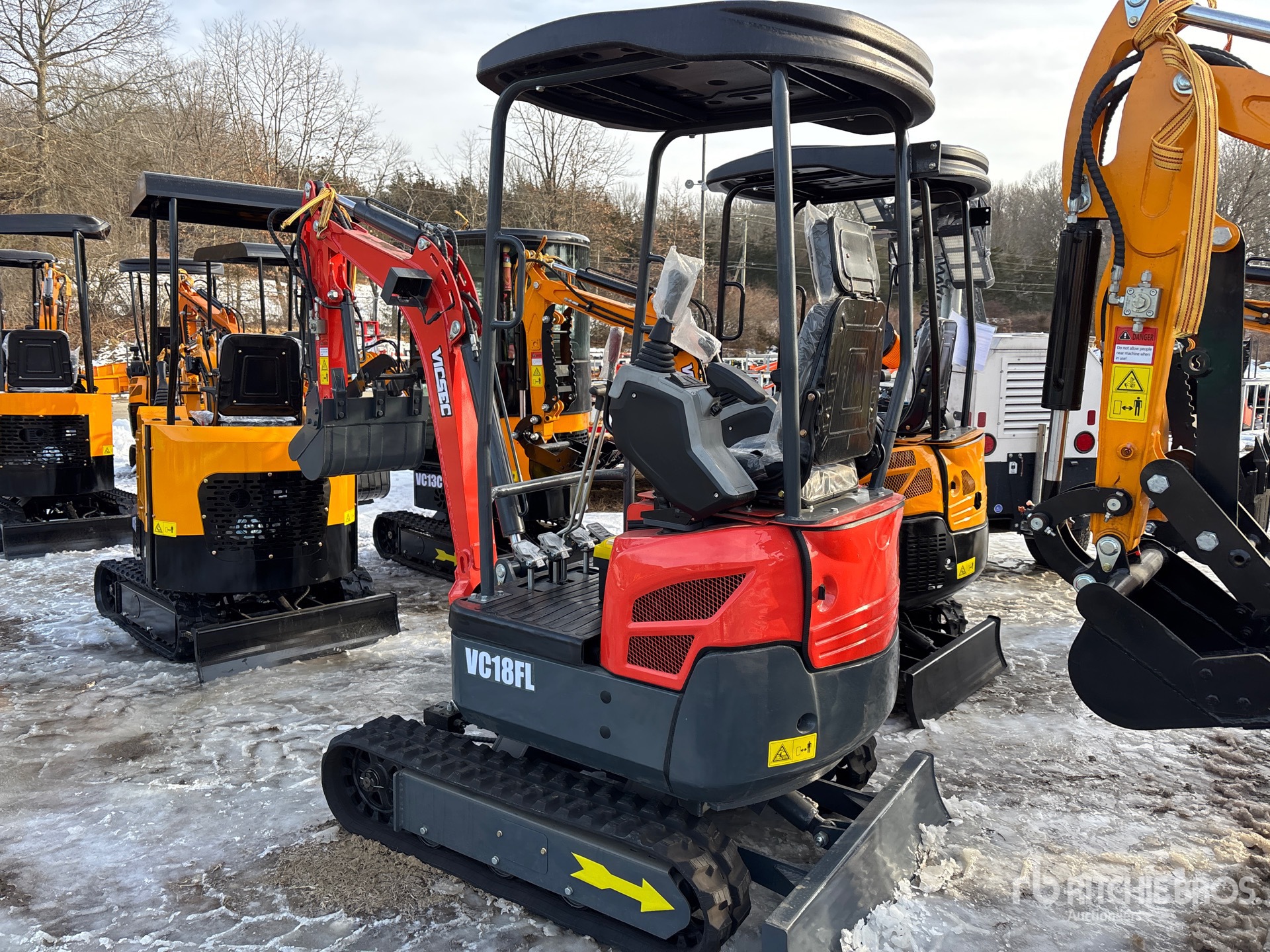 2025 US EPA Label, CARB Compliant, Swing Boom, 2 ft 10 in Stick, Auxiliary Hydraulic Plumbing, Backfill Blade, 8 in Rubber Tracks, 18 in Digging Bucket, Hydraulic Thumb