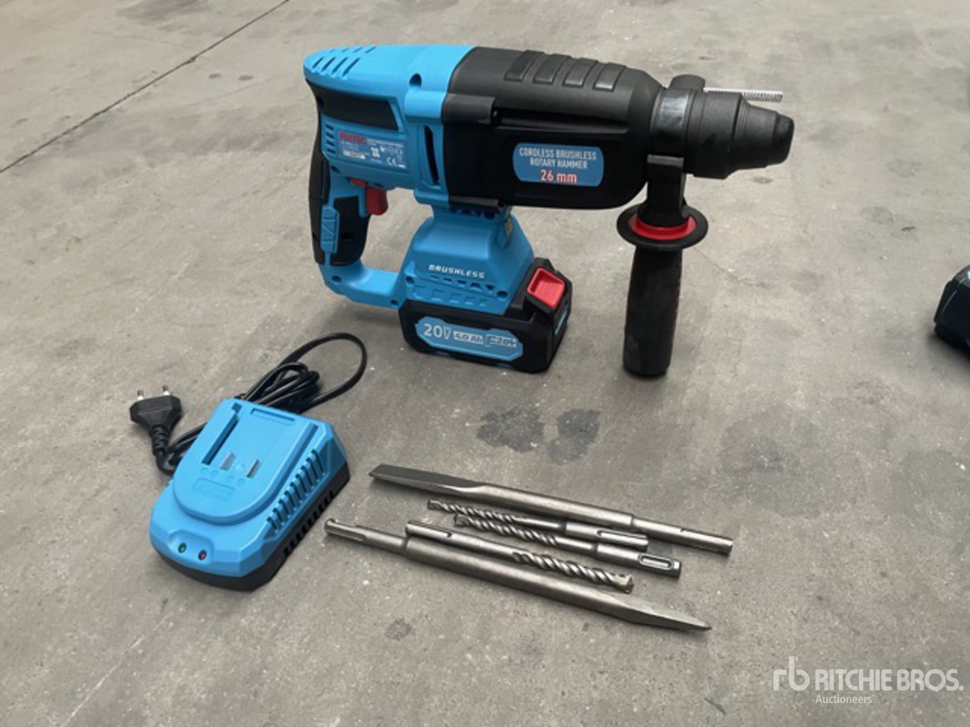 1 X 20V Cordless Brushless Rotary Hammer 1 X 20V Cordless Brushless Angle Grinder 115mm 1 X 20V Cordless Brushless Impact Wrench 1 X 20V Cordless Flashlight 1 x Cordless Drill 2 x 4.0Ah Li-ion Battery 1 x 2.2aA Charger 13pcs drills + bits box 2pcs SDS + Chisels 3pcs Sockets 17/19/21mm 1 x Canvas Bag