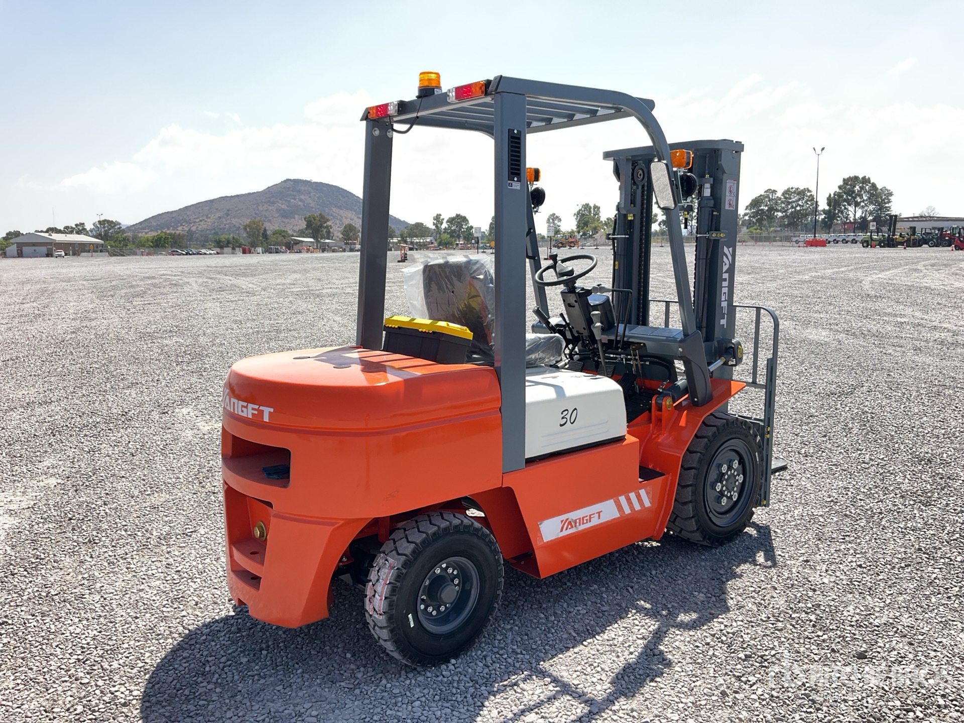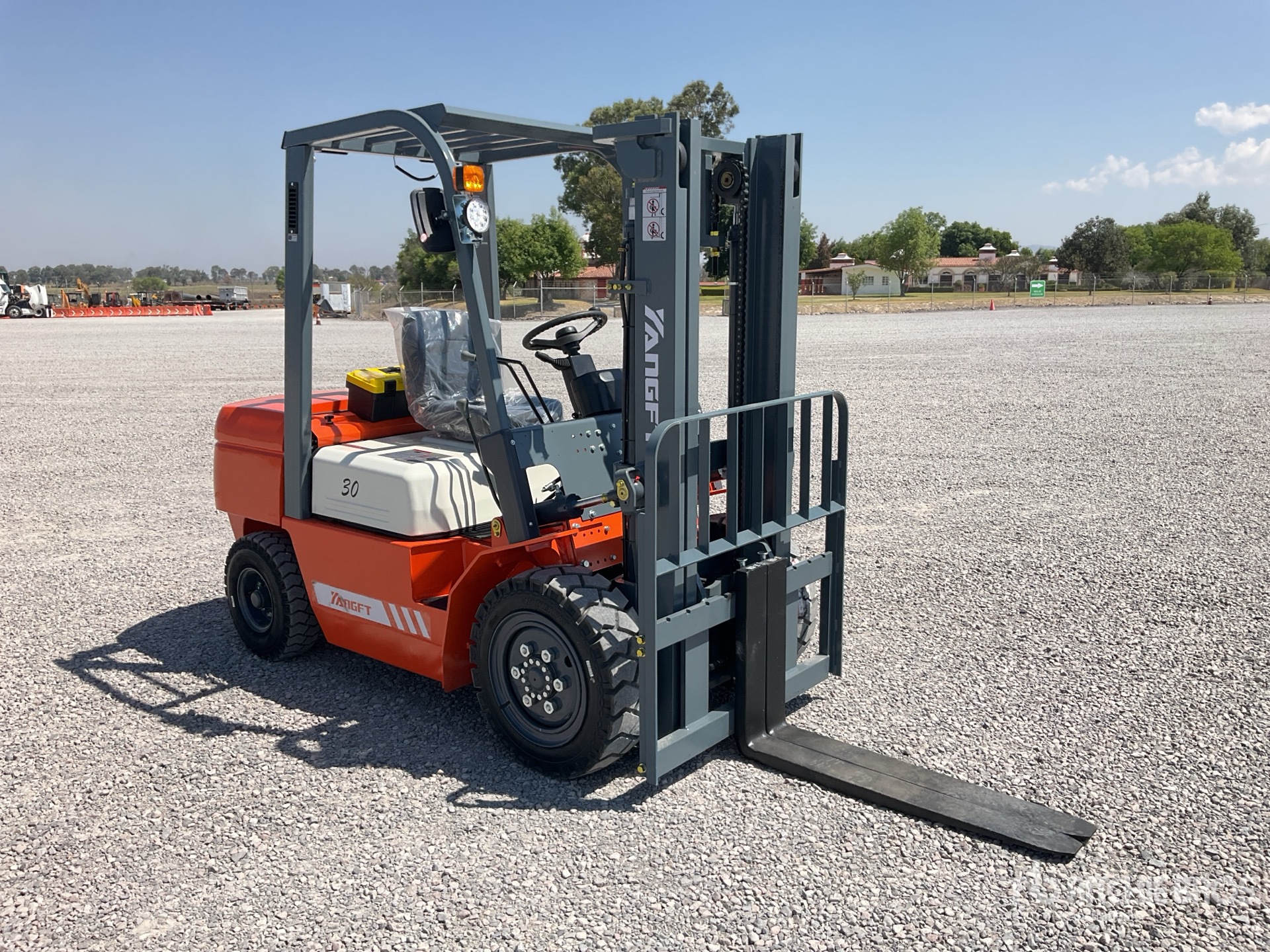 2 Stage Mast, 118 in Max Lift Height, 82 in Lowered Mast Height, 42 in Forks, Solid Pneumatic Tires, 4 Cylinder Diesel Engine, / Mastil 82 in 2 Etapas, Elevacion Max 118 in, Horquillas 42 in, Motor 4 Cilindros Diesel