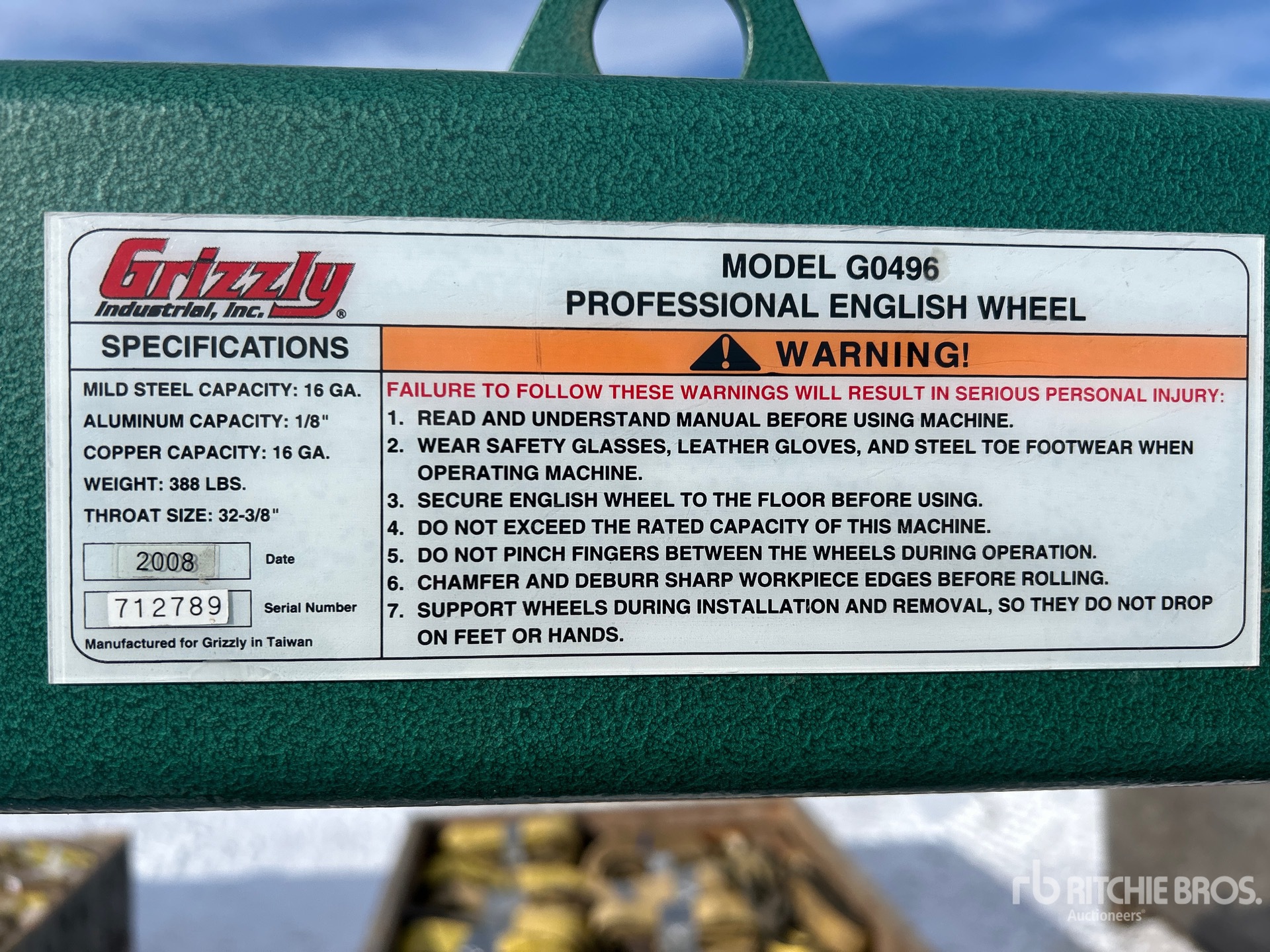 The detailed equipment information is limited in scope, and Ritchie Bros. Auctioneers has not inspected any aspects or components of the equipment other than those expressly set forth herein. Unless expressly stated, we make no representations or warranties, express or implied, concerning the equipment or its components, including without limitation any representations or warranties concerning functionality, conformity or compliance with any safety standard or requirement of any applicable authority or regulatory body, fitness for any particular purpose, or merchantability. You are strongly advised to perform your own detailed inspection of the equipment prior to bidding.