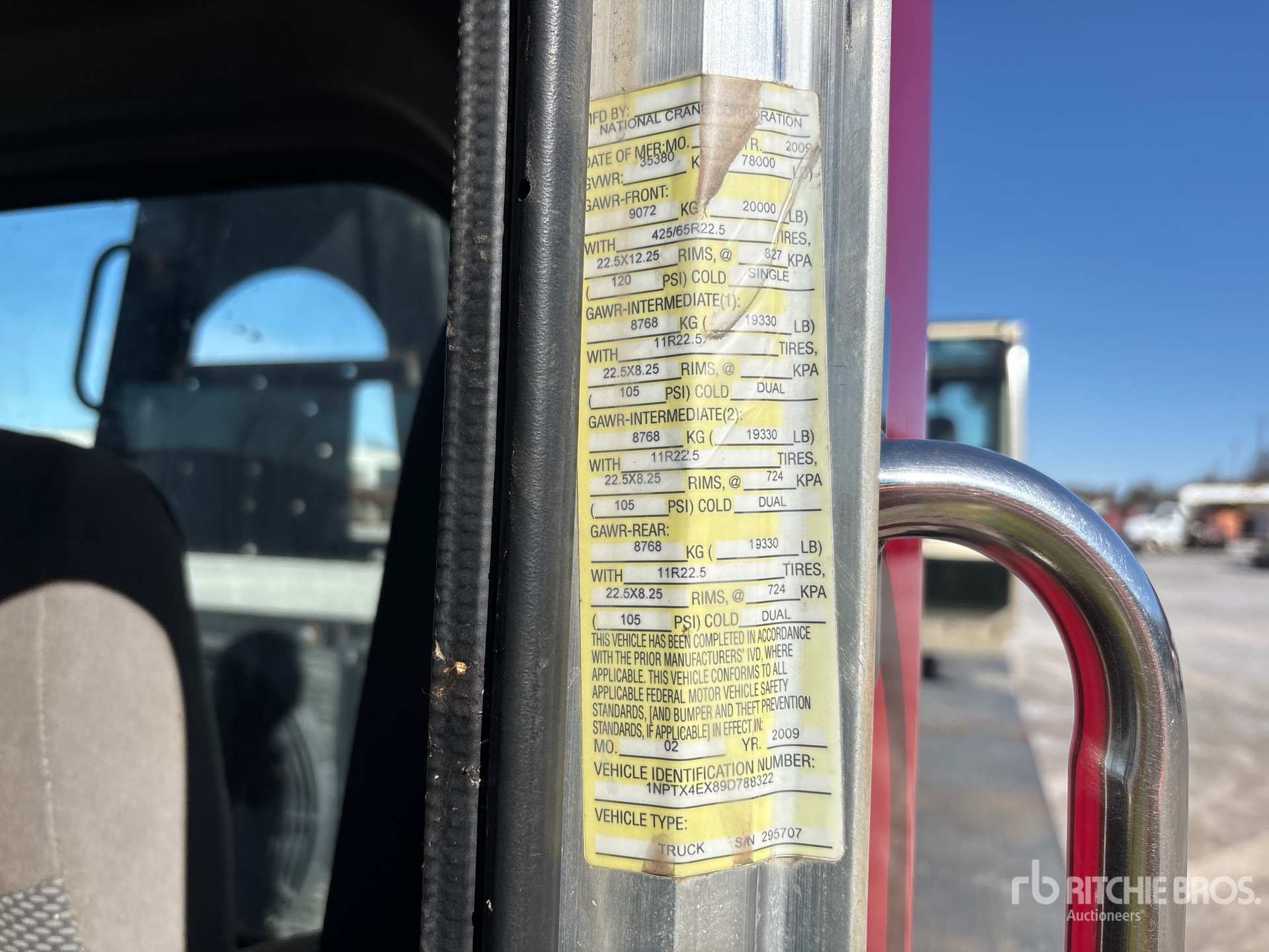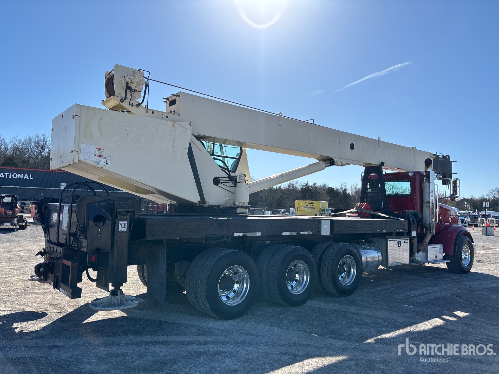 Cummins ISX 6 Cylinder 14.9 L Diesel Engine, 10624 Engine hrs, Engine Brake, Eaton Fuller 8LL Manual Transmission, Triple Differential Locks, 20000 lb Front Axle, 38660 lb Rears, 78000 lb GVWR, Aluminum Wheels, 425/65R22.5 Front Tires, 11R22.5 Rear Tires, Dual Steering Boxes, Double Frame, Air Ride Suspension, 296 in Wheelbase, PTO, 100 ft 4 Section Boom, 171 lb Ovrehaul Ball 7 ton Capacity Johnson 2 Sheave 25 ton Capacity Hook Block, Enclosed Cab, PAT Load Moment Indicator, Out and Down Outriggers, Rear Outriggers, 21 ft x 95 in Bed, Pintle Hitch
