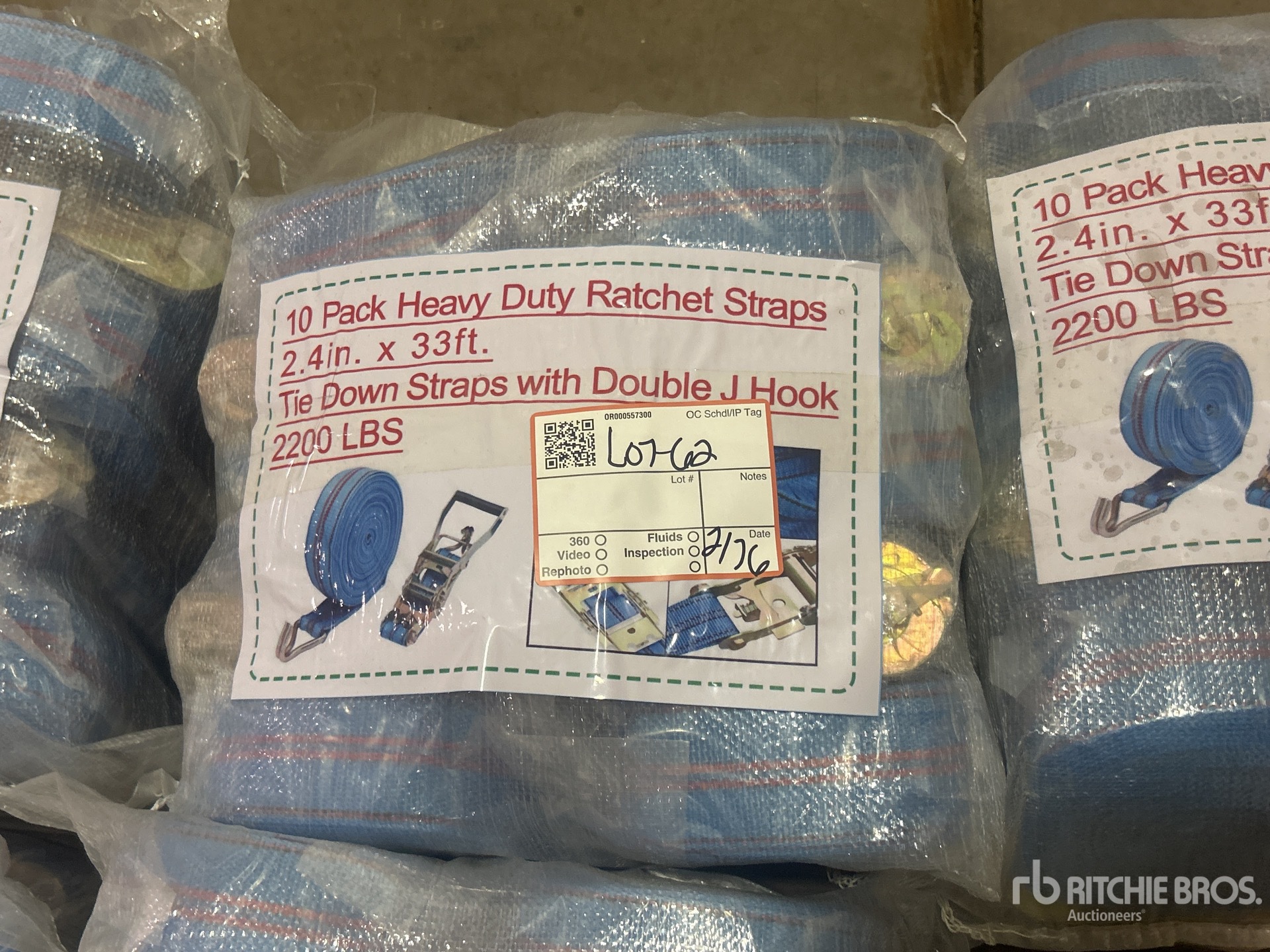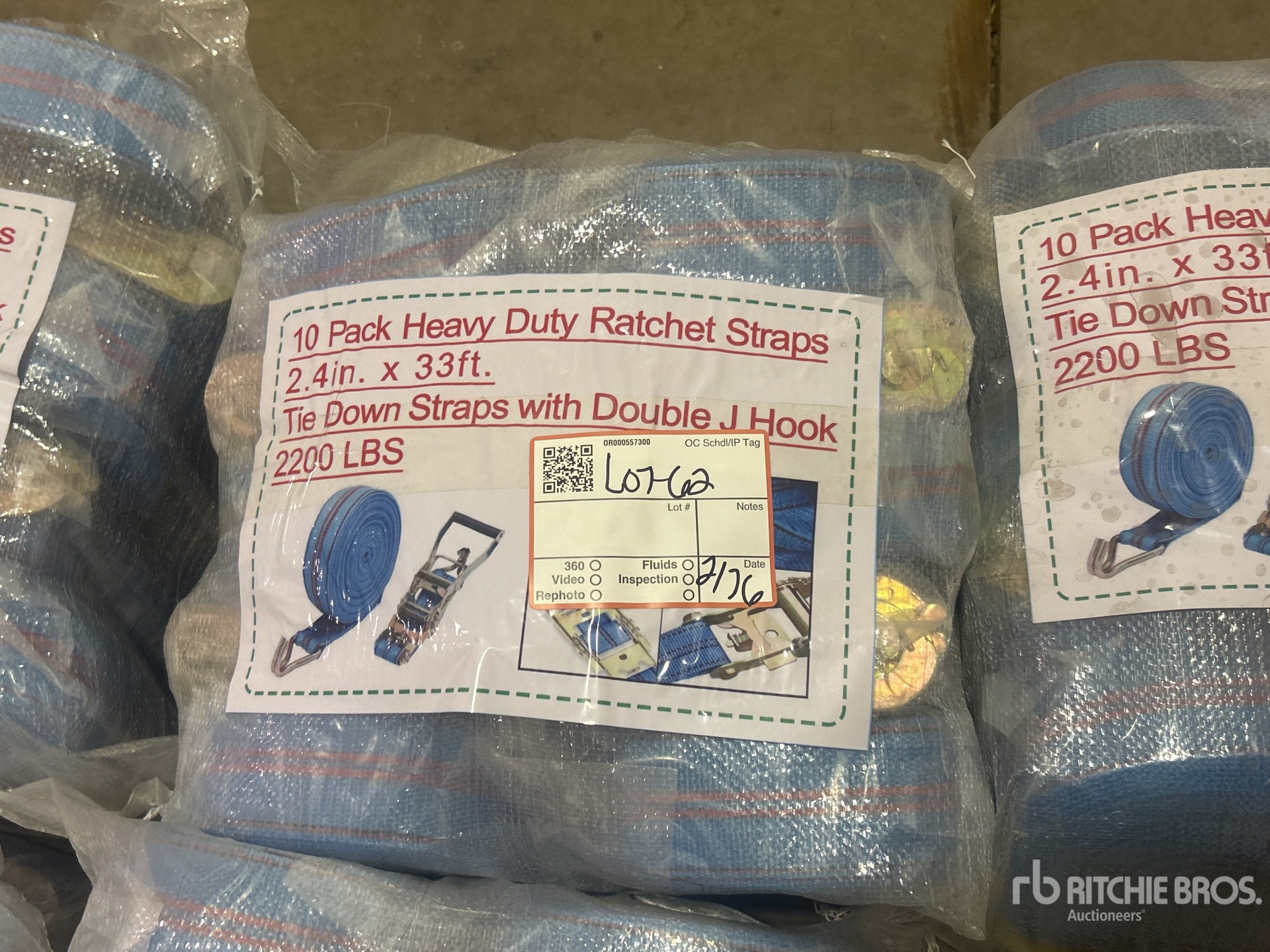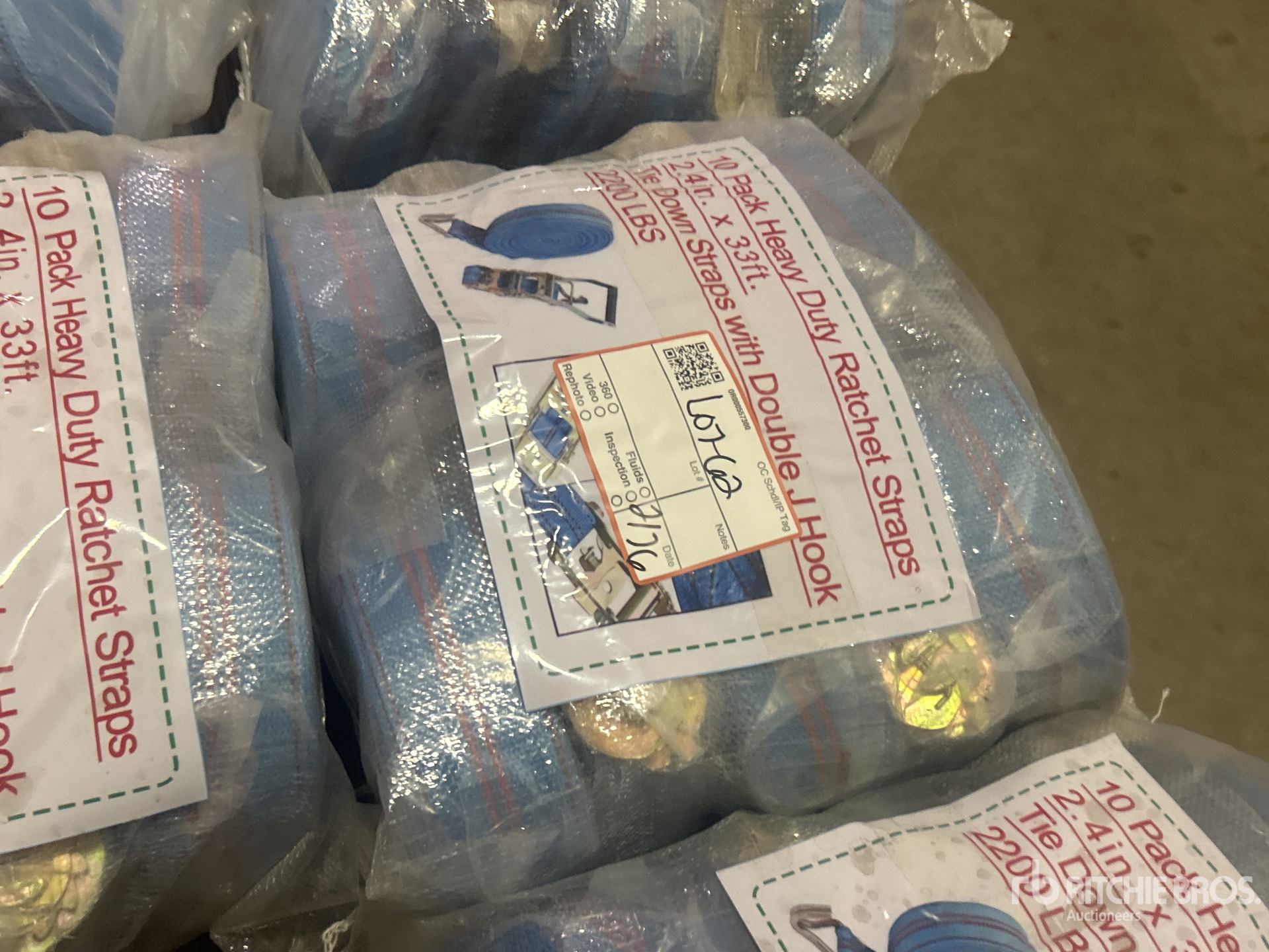 Quantity of (10) Blue Pack Heavy Duty Ratchet Straps 33 ft x 2.4 in (Unused)