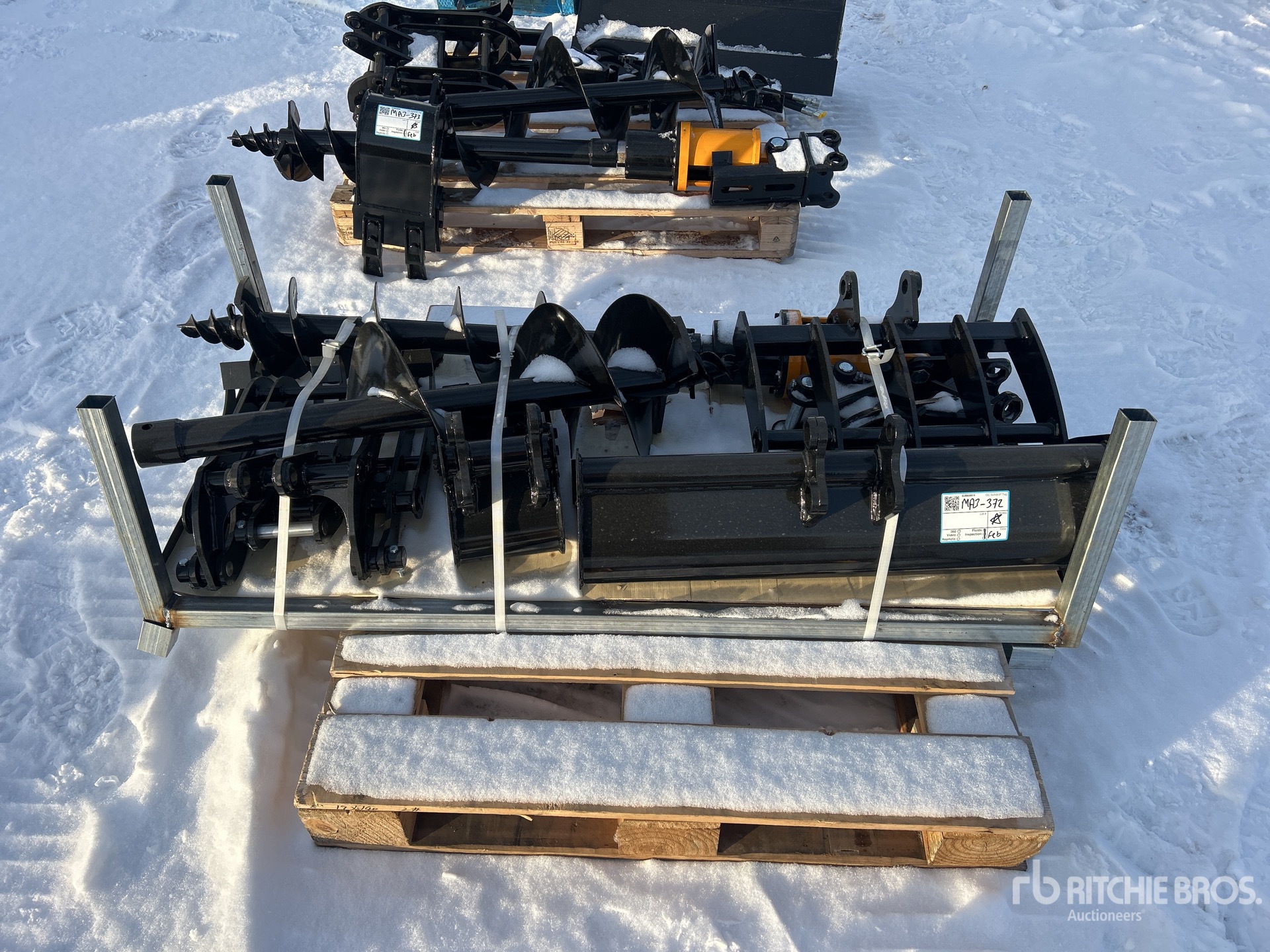 (1) Rake, (1) Ripper, (1) Grapple, (1) Auger w/ 12 in & 16 in Auger Bits, (1) 8 in Narrow Bucket, (1) 24 in Bucket, (1) 32 in Bucket