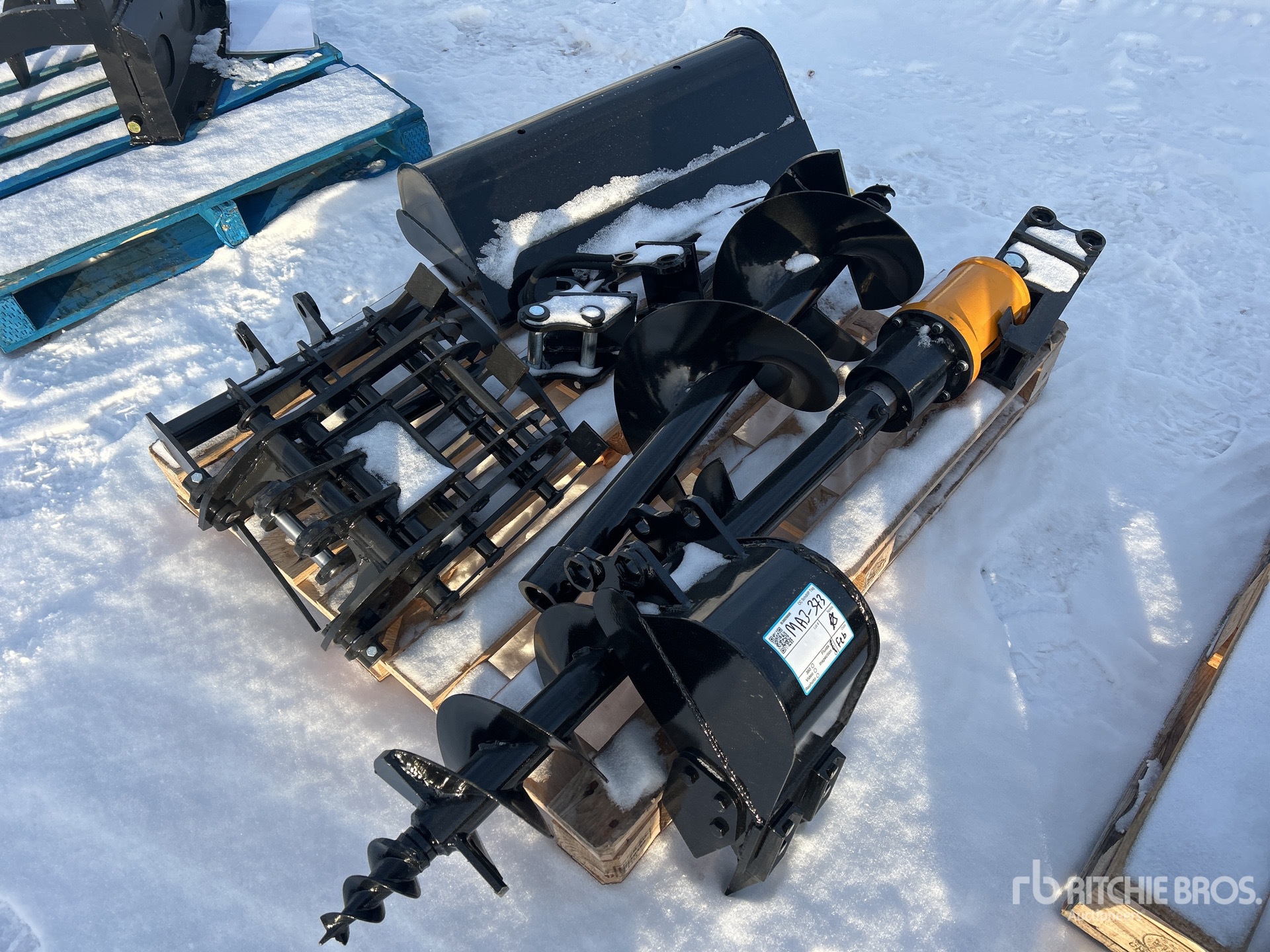 (1) Rake, (1) Ripper, (1) Grapple, (1) Auger w/ 12 in & 16 in Auger Bits, (1) 8 in Narrow Bucket, (1) 24 in Bucket, (1) 32 in Bucket