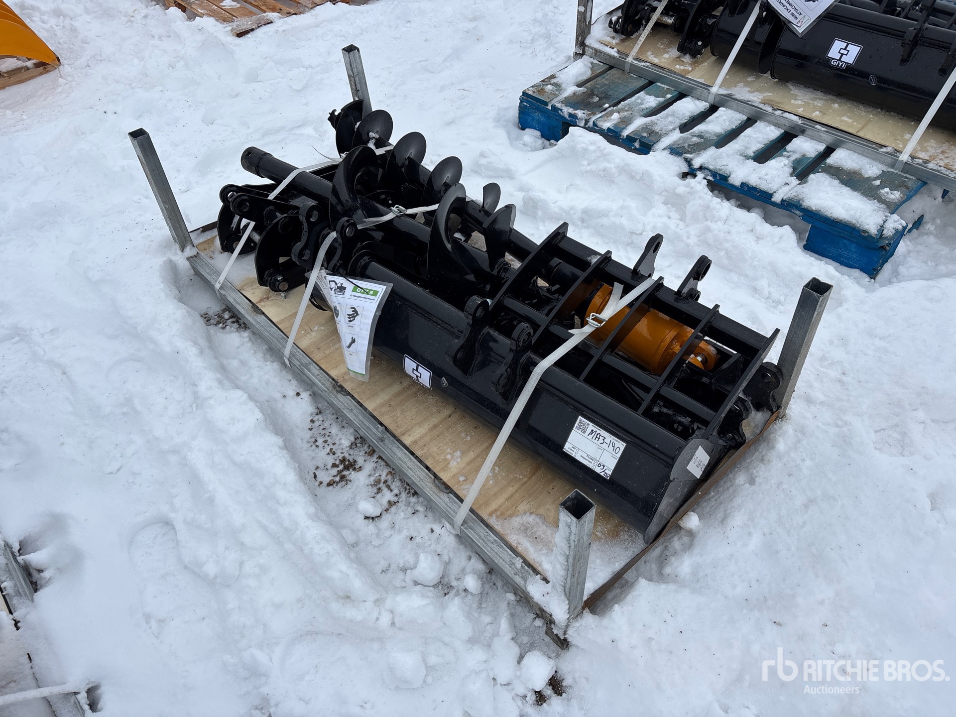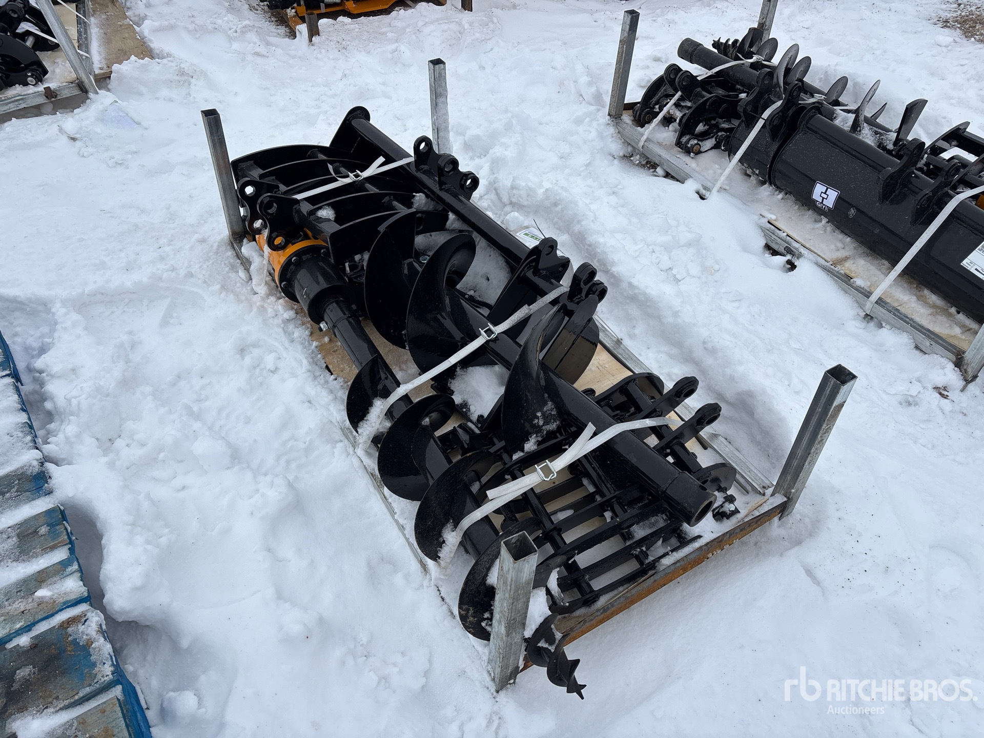 (1) Rake, (1) Ripper, (1) Grapple, (1) Auger w/ 12 in & 16 in Auger Bits, (1) 8 in Narrow Bucket, (1) 24 in Bucket, (1) 32 in Bucket, Item is new/unused.