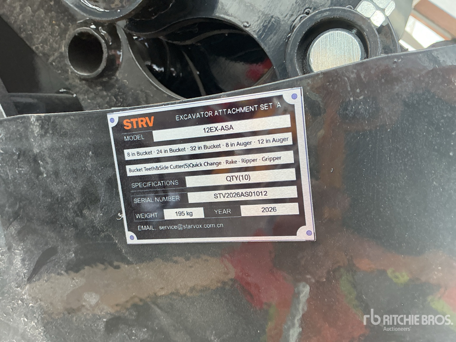 (1) 8 in Bucket, (1) 24 in Bucket, (1) 32 in Bucket, (1) 8 in Auger, (1) 12 in Auger, (1) Quick Coupler, (1) Rake , (1) Ripper, (1) Grapple, (1) Set of Bucket Teeth w/ Side Cutter, Item is new/unused.