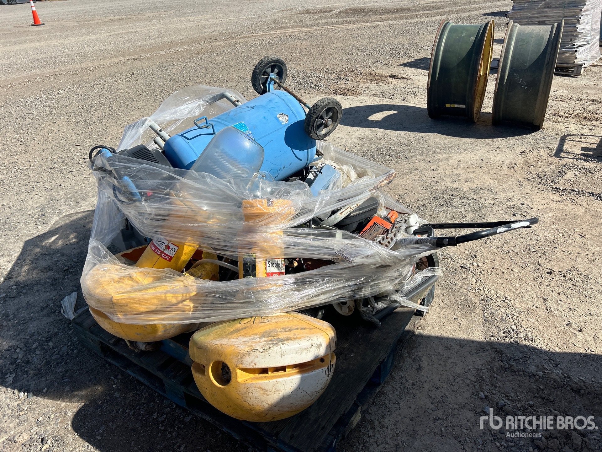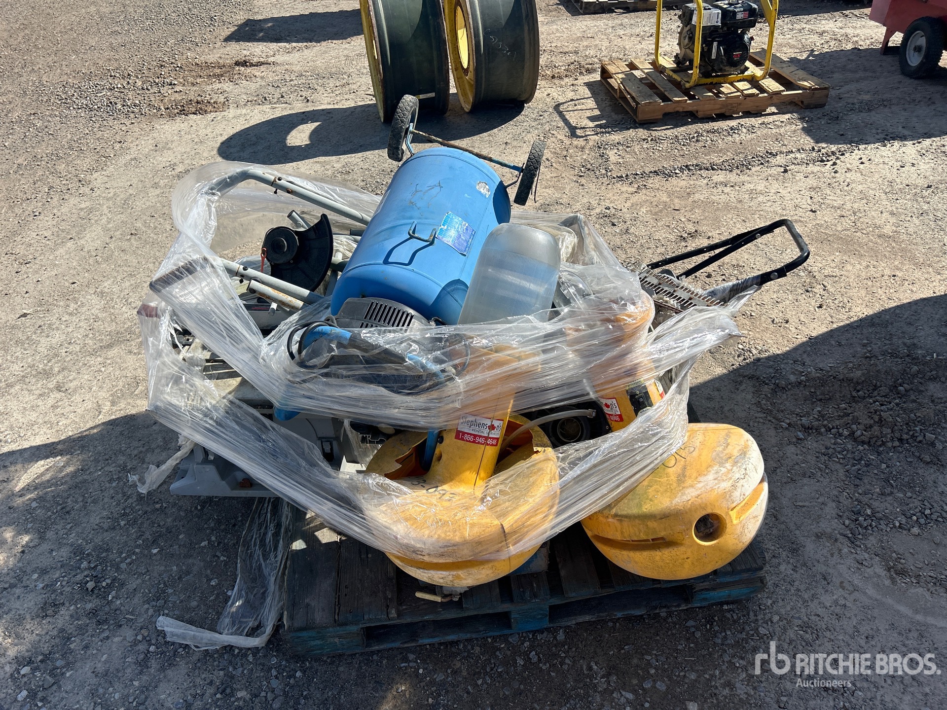 2 lights, table saw, weed whacker, 2 bush cutters, lawn mower, pump