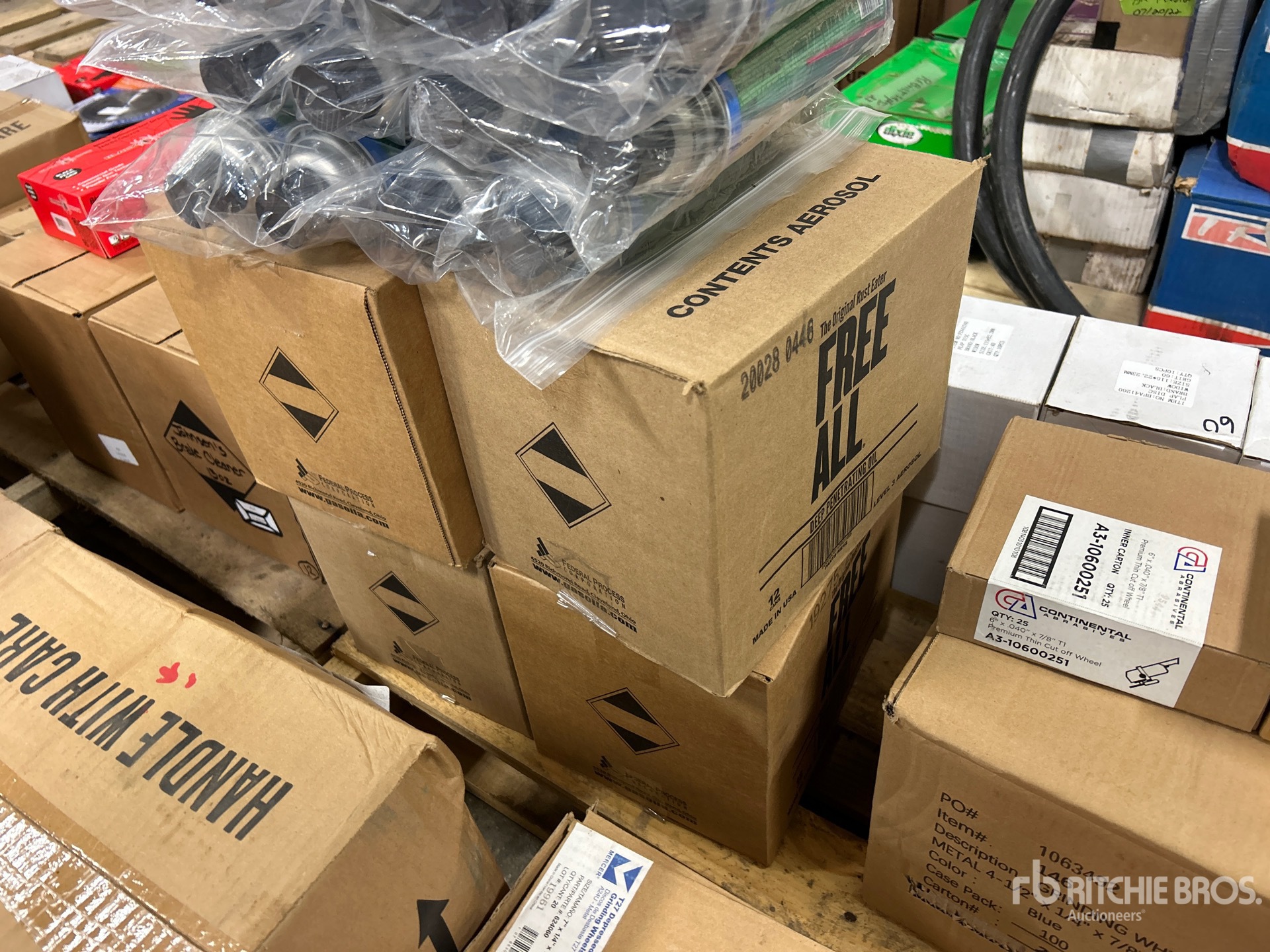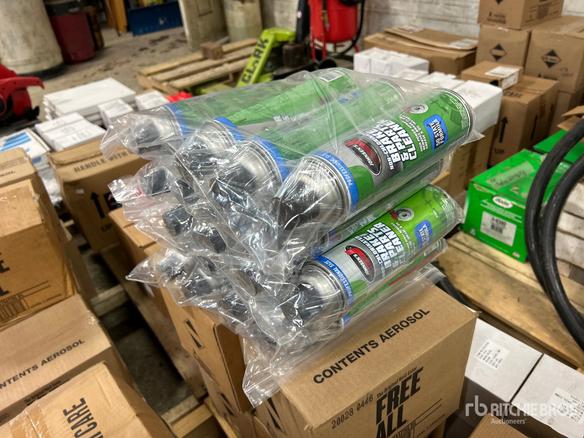 Quantity of Brake Cleaner, (4)- Boxes of Free-All, Nitrile Gloves, Hand Cleaner