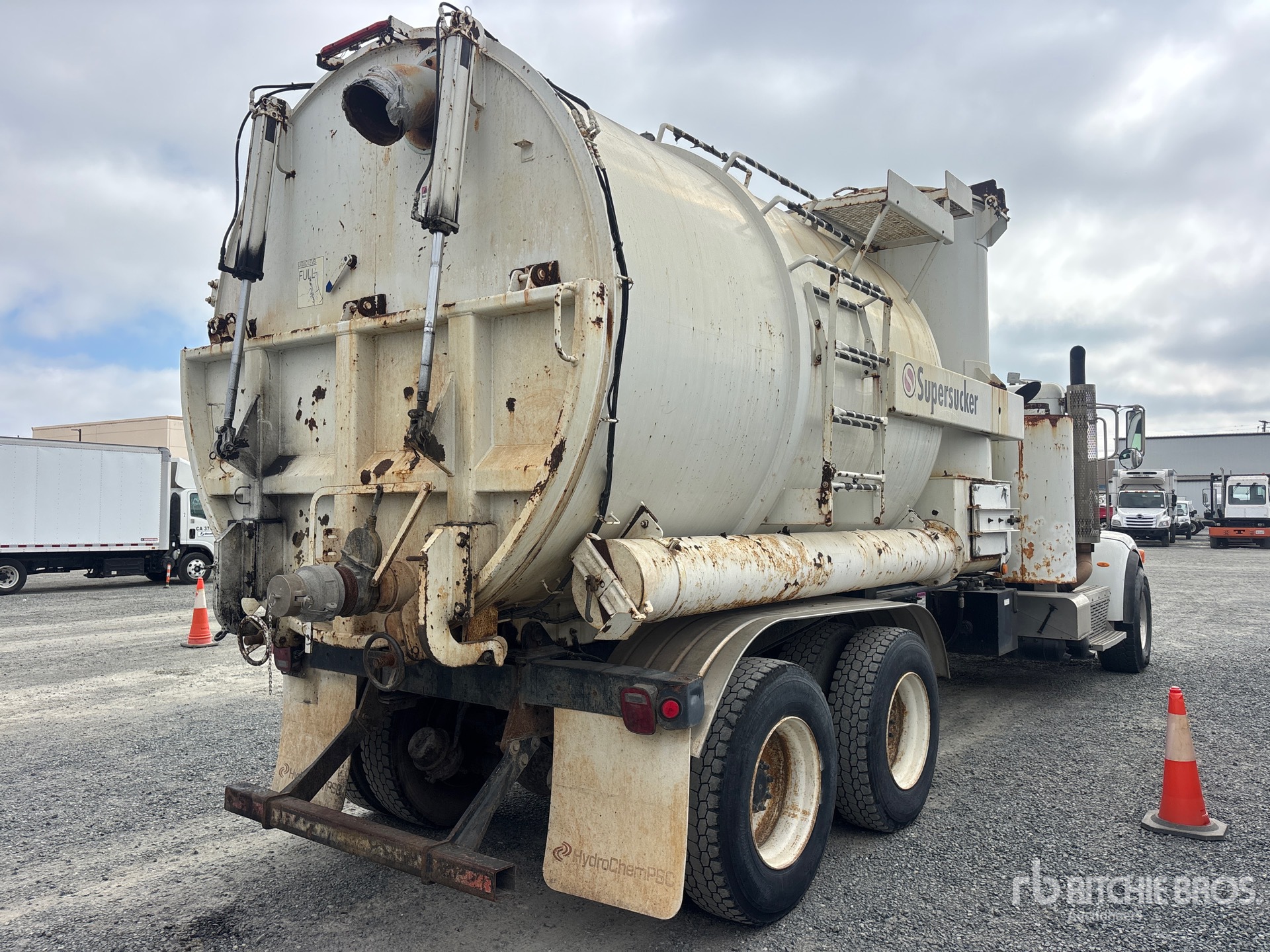 Cummins ISX12 6 Cylinder 12 L Diesel 385 hp Engine, US EPA Label, Requires Diesel Exhaust Fluid, 5428 Engine hrs, Engine Brake, Eaton Fuller Manual Transmission, Differential Lock, 20000 lb Front Axle, 44000 lb Rears, 64000 lb GVWR, Air Ride Cab, Aluminum Front Wheels, 425/65R22.5 Front Tires, 11R22.5 Rear Tires, Dual Steering Boxes, Double Frame, Spring Suspension, 275 in Wheelbase, Wet Kit, Steel Debris Tank, Hydraulic Tailgate Locks, Tri-Nado PTO Driven Pump
